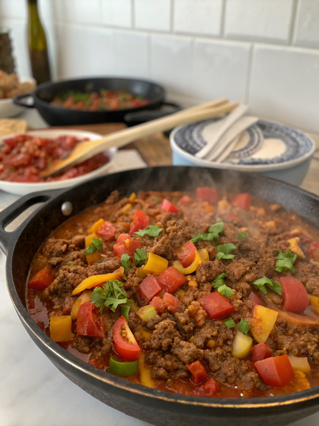 The Mexican version we’re exploring today features ground beef, potatoes, and a medley of vegetables cooked in a rich tomato sauce seasoned with warm spices. It’s essentially comfort food with a spicy kick – the kind of meal that fills your kitchen with mouthwatering aromas and makes everyone ask, “When’s dinner ready?”